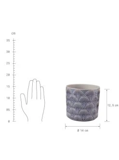 Einfach mustergültig: Der Ornament-geschmückte Bloomy Blumentopf 12,5 cm lässt das Kunststoff-Drumherum von Topfblumen dekorativ verschwinden. Aus Steingut. In verschiedenen Größen und Farben erhältlich, ideal auch zum Kombinieren. – Gemustert – Modern