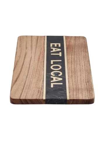 In Ihrer Küche oder Ihrem Esszimmer wird das Eat Local Deko Holzbrett zu einem coolen Statement: Es kombiniert die wertigen Materialien Akazienholz, Marmor und Messing zu einem coolen Look mit klarer Botschaft. Als Blickfang stellen Sie das Dekobrett auf, z.B. auf der Arbeitsplatte, der Anrichte oder einem Board, lässig angelehnt an die Wand. Natürlich kann sich das markante Holzbrett auch als Tischdeko gut sehen lassen, oder Sie befestigen es wie ein Schild an der Wand.