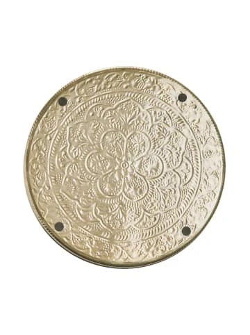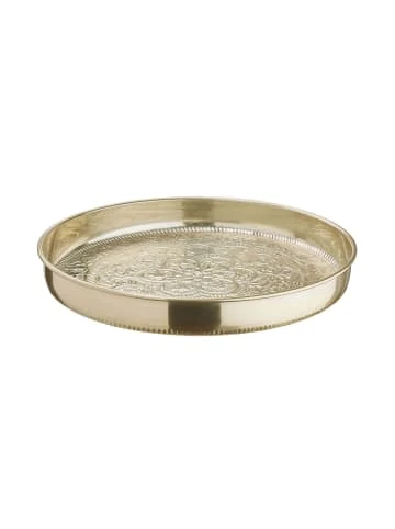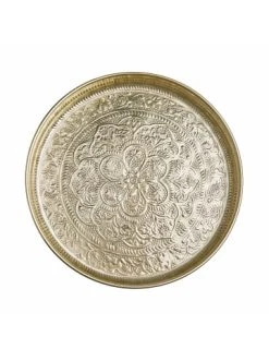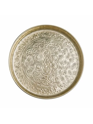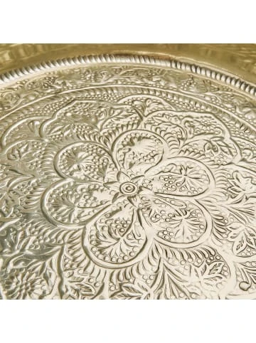 Mit traditioneller Hammerschlag-Optik und 46 cm Durchmesser setzt das Oriental Lounge Deko-Tablett aus Eisen ein schimmerndes Zeichen auf Ihrem Tisch oder Ihrer Anrichte, z. B. geschmückt mit Kugeln, Tannenzapfen oder Kerzen.