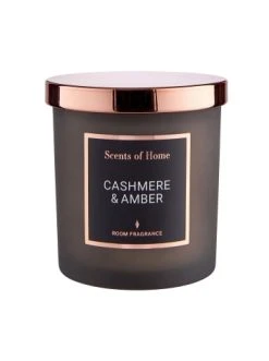 Warum Mutter Natur den Menschen mit Millionen von Duftzellenrezeptoren ausgestattet hat? Damit er die harmonischen Aromen der Scents of Home Duftkerze Cashmere & Amber sinnlich auskosten kann. Die edle Duftkerze im Glas schnuppert nach Kaschmir und Bernstein ‒ und beweist mit ihrem funkelnden Metallicdeckel auch optisch einen guten Riecher. Garantiert ohne Palmöl, dafür mit Sojawachs-Anteil. Weitere Varianten erhältlich, z. B. für verschiedene Räume oder zum Verschenken.