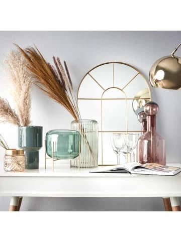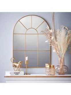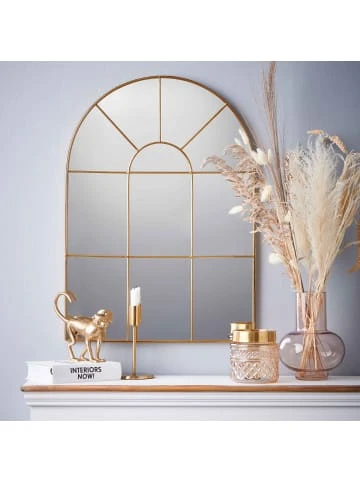 Schöner Schein: Der Finestra Fensterspiegel mit Metallrahmen zaubert mehr Licht in Ihr Wohnzimmer und setzt einen eleganten Akzent auf Ihrer Kommode oder Ihrem Sideboard. Als stilvolle Deko ergänzt er Ihre Einrichtung natürlich auch im Schlafzimmer oder Flur, gerne in Kombination mit trendigen Vasen, Windlichtern oder Deko-Objekten in Gold.