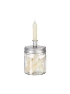 Raffiniert: Das Candle Jar Glas mit Kerzenhalter setzt dem Aufbewahrungsglas für Little Light Kerzen noch einen drauf: Auf dem Deckel kann eine der Little Light Kerzen befestigt werden. Sobald sie abgebrannt ist, ist Nachschub ohne langes Suchen griffbereit. Ganz schön praktisch – und dekorativ sowieso. Passende Little Light Kerzen separat erhältlich.