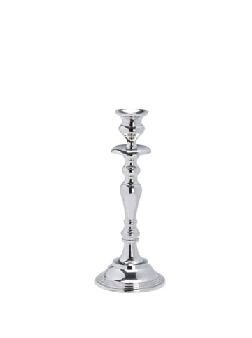 Es gibt kaum eine schönere Art, Eleganz und Luxus zu genießen. Bei diesem silberfarbenen Kerzenhalter im traditionellen Stil zeugen feine Verzierungen von einer aufwändigen Verarbeitung. Im Kerzenlicht funkelt er festlich und rückt Ihren gedeckten Tisch oder Ihr Wohnambiente in ein sehr edles Licht. Aus vernickeltem und poliertem Aluminium, mit Filzschutz an der Unterseite. In weiteren Größen und Ausführungen erhältlich. – Einfarbig – Festesssen – Silvester – Valentinstag – Weihnachtsessen – Feiertag – Weihnachten