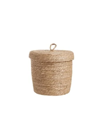 Der geflochtene runde Rush Rope Korb aus Wasserhyazinthe mit Deckel ist überall in Ihrem Zuhause zur Stelle, wo dies und das sonst kreuz und quer herumliegen würde. Weitere Varianten erhältlich.