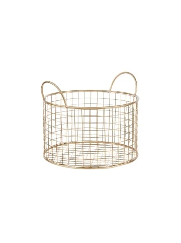 Ordnung kann so chic aussehen mit dem runden Hoop Korb aus Metall. Der trendige Korb mit Griffen räumt z.B. im Wohnzimmer mit Fernbedienungen und Ladegeräten, mit Flur mit Briefen und Schlüsseln und im Badezimmer mit Fläschchen und Tuben auf. In zwei Größen und in Schwarz und Gold erhältlich.