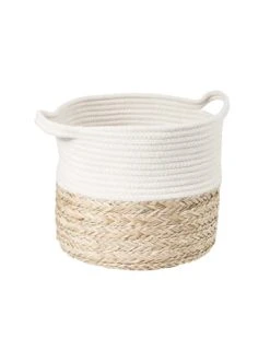 Oben weiß, unten natur – der Basic Braid Seegras-Korb 26 cm macht Ordnung halten, Sortieren, Verstauen und Aufbewahren noch viel schöner. Mit Griffen. Weitere Größen und Varianten erhältlich. – Geflecht – Landhaus – Zeitlos