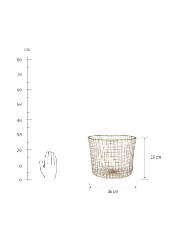 Elegant und modern ist er, der stilvolle Grid Metallkorb in Gold. Der große Drahtkorb aus filigranen Eisenstreben ist ein echter Allrounder für Zuhause. Mit einem Durchmesser von 36 cm ist der stabile Korb zur Aufbewahrung von Handtüchern oder als stilvoller Papierkorb fürs Arbeitszimmer vielseitig einsetzbar. Ist Ihnen dieses Schmuckstück zu schade um es für Altpapier zu verwenden, macht der Korb auch als Deko-Highlight eine tolle Figur. Die leicht ungeraden Eisendrähte verleihen jedem Korb einen ganz individuellen Look, sodass er auch einen einzigartigen Übertopf für Grünpflanzen abgibt. Auf den Geschmack gekommen? Der dekorative Eisenkorb ist auch noch in weiteren Größen erhältlich.