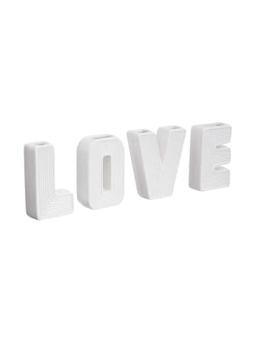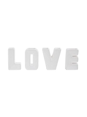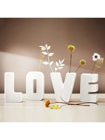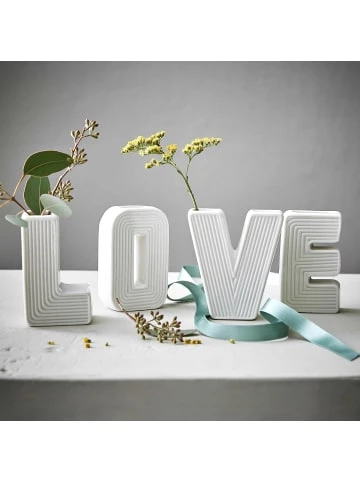 Weil Liebe das Schönste auf der Welt ist, verlieben Sie sich direkt in die 4 Love Mini Vasen aus weißem Steinzeug. Die kleinen Vasen schmücken Sie – gerne auch einzeln – mit einem Blümchen, oder Sie nutzen die Buchstaben-Vasen für eine Liebeserklärung auf dem Frühstückstisch.