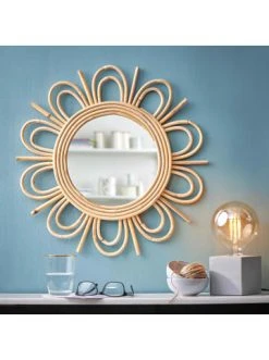 Ein bisschen Ibiza-Flair für Ihre Wohnung: Der handgearbeitete Cottage Rattan Spiegel blumenförmig spiegelt das mediterrane Lebensgefühl wider, sonnig und voller Natürlichkeit. Solche Boho-Akzente stehen Ihrem Flur und wirken ebenso dekorativ im Wohn- und Schlafbereich. Weitere Varianten erhältlich.