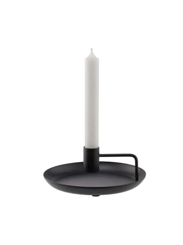 Die Neuinterpretation eines Klassikers: Beim Highlight Stabkerzenhalter aus schwarzem Eisen nimmt das traditionelle Nachtlicht mit Henkel eine moderne Form an. Das Design im skandinavischen Stil reduziert sich auf klare Linien, und das macht den Stabkerzenhalter besonders vielseitig beim Dekorieren. Sie schmücken damit z.B. Ihren Beistelltisch oder integrieren den Kerzenhalter in ihre Tischdekoration, Ton in Ton mit dunklen Kerzen oder kontrastreich mit farbigen oder hellen Kerzen.