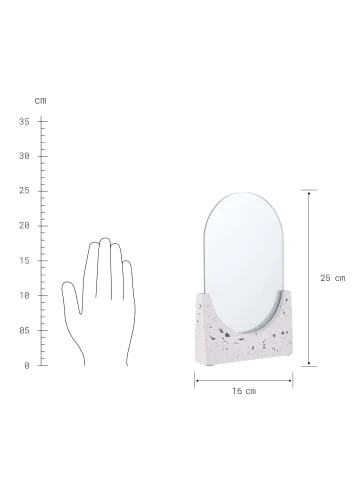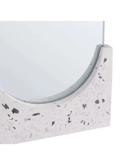 Sie platzieren den zierlichen Terrazzo Standspiegel auf Ihrem Schminktisch oder einem Board – und erfreuen sich bester Ansichten. Denn der dekorative Terrazzofuß aus Zement in Creme ist hübsch anzusehen und harmoniert mit dem ovalen Spiegel aus Glas. Noch schöner kann da eigentlich nur Ihr Spiegelbild sein…