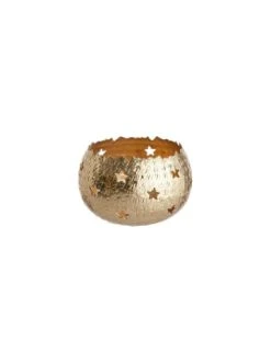 Sie sehen goldenen Zeiten entgegen mit dem goldfarbenem Starry Sky Teelichthalter aus Aluminium. Ob als Schmuckstück auf dem gedeckten Tisch, als Deko auf einer Kommode oder als Stimmungsmacher an langen Abenden: Mit seinem schönen Glanz und der gehämmerten Optik bringt dieser runde Teelichthalter ihr Zuhause zum Strahlen. In zwei Varianten erhältlich, ideal auch zum Kombinieren.