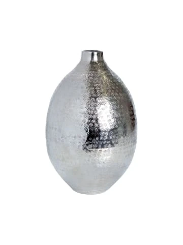 Im Orient genießt das Kunsthandwerk eine lange Tradition. Neben Pfannen und Töpfen werden auch Vasen und andere metallene Gefäße vorsichtig mit Hammer und Stichel bearbeitet, bis die Oberfläche eine leichte Struktur und damit ein charakteristisches Muster aufweist. Auch die silberfarbene Indira-Vase in klassischer Form besticht durch diesen besonderen Look. In einer weiteren Größe erhältlich. – Einfarbig – Struktur – Klassisch – Nicht f?r Sp?lmaschine geeignet!