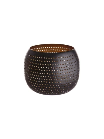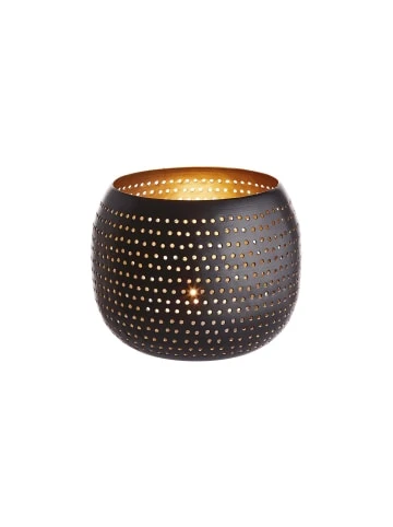 Ein Lichtblick aus Eisen ist dieses Luminous Windlicht mit Lochstanzung in winterlichem Schwarz-Gold. Form und Farbe verbreiten Gemütlichkeit in Ihrem Zuhause und machen Ihnen die länger werdenden Abende auf dem Sofa, vor dem Kamin oder mit Freunden am gedeckten Tisch so richtig heimelig.