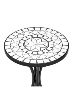 Moment mal: Der romantische Palazzo Beistelltisch aus schwarzem Eisen mit weißem Mosaik (Handarbeit) lädt im Wintergarten, auf der Terrasse oder dem Freisitz zum Cappuccino am Vormittag oder zum Espresso nach dem Essen ein. So viel Zeit muss sein. Weitere Varianten der Serie erhältlich. – Mosaik – Gemustert – Mediterran