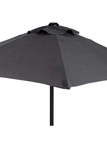 Sie spannen den halbrunden Siesta Sonnenschirm mit Polyesterbezug (UV-Standard 801) auf, sobald die Sonne hoch am Himmel steht. Einfach bei Bedarf kippen – und schon gönnen Sie sich eine kleine, erholsame Siesta im Schatten. – Spannen Sie den Siesta Sonnenschirm auf – Lieferumfang: 1x Siesta Sonnenschirm – Für den Außengebrauch geeignet. – Gestell aus Aluminium, Bezug aus Polyester – Breite 184 x Tiefe 94 x Höhe 215 cm, Höhe der Kippfunktion: 163 cm, Schirmstange: Ø 38 mm, Höhe der Kurbel 115 cm, Tiefe der Kurbel 12 cm