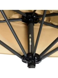 Sie spannen den halbrunden Siesta Sonnenschirm mit Polyesterbezug (UV-Standard 801) auf, sobald die Sonne hoch am Himmel steht. Einfach bei Bedarf kippen – und schon gönnen Sie sich eine kleine, erholsame Siesta im Schatten. – Spannen Sie den Siesta Sonnenschirm auf – Lieferumfang: 1x Siesta Sonnenschirm – Für den Außengebrauch geeignet. – Gestell aus Aluminium, Bezug aus Polyester – Breite 184 x Tiefe 94 x Höhe 215 cm, Höhe der Kippfunktion: 163 cm, Schirmstange: Ø 38 mm, Höhe der Kurbel 115 cm, Tiefe der Kurbel 12 cm