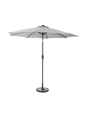 Spendet tagsüber Schatten und UV-Schutz – und in der Dunkelheit Licht: Der Sun & Stars Sonnenschirm mit 2,7 m Durchmesser verfügt über solarbetriebene LED Lichter an der Unterseite der Aluminium-Streben. Die benötigte Energie tankt der integrierte Akku bei Sonneneinstrahlung, während Sie sich ein entspanntes Päuschen auf dem Balkon oder der Terrasse gönnen. Mit Knickfunktion von ca. 45 Grad in 2 Richtungen ist es dabei ein Leichtes, den Schirm perfekt auszurichten. In einer weiteren Größe erhältlich. Passende Schirmständer separat erhältlich. – Aluminium-Gestell: leicht und stabil – Lichtbeständiger Polyesterbezug mit UV-Schutz: wirkt wie LSF 80 – Hochwertige, wetterfeste Ausführung – Praktisch: mit Kurbel und Kippfunktion