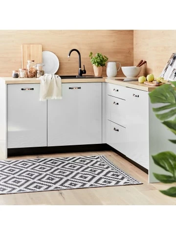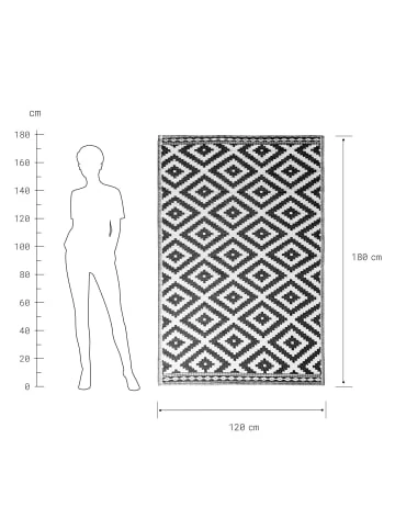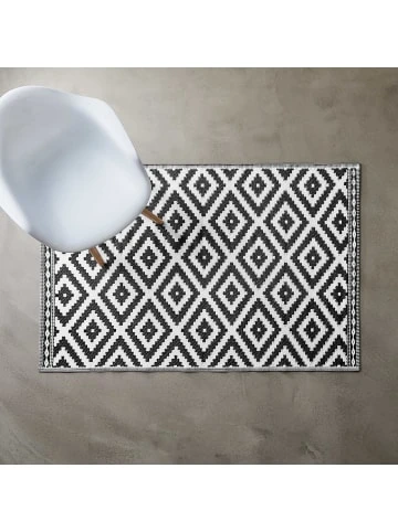 Weil Sie auf wohnlich und zugleich pflegeleicht stehen, legen Sie sich den modernen Colour Clash Outdoorteppich mit schwarz-weißem Rauten-Muster und Bastteppich-Struktur zu Füßen. Und das nicht nur auf Ihrem Balkon oder Ihrer Terrasse, sondern gerne auch indoor im Wohnbereich. So läuft es sich drinnen wie draußen spürbar angenehm. Aus robustem Kunststoffgewebe, UV-beständig. – Robustes Kunststoffgewebe: UV-beständig – Moderner Look: für das unkomplizierte Wohnen und Leben – Vielseitig: für Indoor und Outdoor geeignet