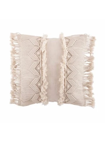 Knüpft perfekt an die Wohntrends „Boho“ und „Ibiza“ an: Das Macramé Deko-Kissen 45 x 45 cm aus creme-farbener Baumwolle setzt die traditionellen Knüpfmuster formvollendet in Szene – hergestellt in aufwändiger Handarbeit für einen authentischen Look. Weitere Macramé Accessoires für Ihr Zuhause erhältlich, ideal auch zum Kombinieren.