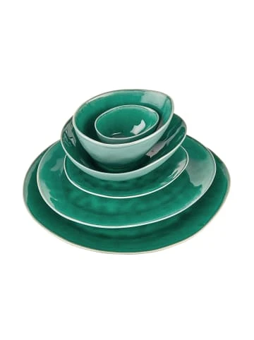 Zurück zur Natur: Unser 16-teiliges De La Roya Geschirrset zum Dinner aus Steinzeug ist von organischen Formen, von Blättern und Pflanzen inspiriert. Und das inspiriert Sie dazu, zu Hause mal etwas ganz Neues auf den Tisch zu bringen. – hochwertiges Geschirr aus glasiertem Steingut – Innenseite mit kunstvoller Krakelee-Glasur beschichtet – jedes Stück ist ein Unikat – organische Form, die von der Natur inspiriert ist – erfrischende Farben und unkonventionelles Design – innen glänzend, außen matt
