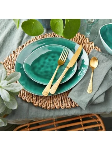 Zurück zur Natur: Unsere De La Roya Teller im 4er-Set aus Steinzeug sind von organischen Formen, von Blättern und Pflanzen inspiriert. Und das inspiriert Sie dazu, zu Hause mal etwas ganz Neues auf den Tisch zu bringen.