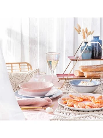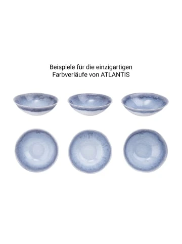 Mit unserer Geschirrserie Atlantis im angesagten Boho-Stil und organischen Formen kommt Extravaganz auf den gedeckten Tisch! Die Schale im 4er-Set aus Steinzeug ist handgefertigt in Portugal. Durch die reaktive Glasur entstehen unregelmäßige Farbverläufe, die jedes Teil der Serie zu einem echten Unikat werden lassen. Atlantis ist in verschiedenen Farben erhältlich, die Sie miteinander kombinieren können und so für Abwechslung auf Ihrem Tisch sorgen. Durch eine Iris-ähnliche Farbzentrierung passen alle Teile perfekt zusammen. Jedes Teil der Serie ist spülmaschinen- und mikrowellengeeignet. – Reaktive Glasur: Jedes Teil ein Unikat, durch Unterschiede bei der Farbgebung – Für den täglichen Gebrauch – Geschirrspülmaschinen- und mikrowellengeeignet