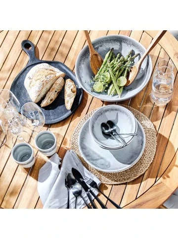 Mit unserer Geschirrserie Atlantis im angesagten Boho-Stil und organischen Formen kommt Extravaganz auf den gedeckten Tisch! Die Schale im 4er-Set aus Steinzeug ist handgefertigt in Portugal. Durch die reaktive Glasur entstehen unregelmäßige Farbverläufe, die jedes Teil der Serie zu einem echten Unikat werden lassen. Atlantis ist in verschiedenen Farben erhältlich, die Sie miteinander kombinieren können und so für Abwechslung auf Ihrem Tisch sorgen. Durch eine Iris-ähnliche Farbzentrierung passen alle Teile perfekt zusammen. Jedes Teil der Serie ist spülmaschinen- und mikrowellengeeignet. – Reaktive Glasur: Jedes Teil ein Unikat, durch Unterschiede bei der Farbgebung – Für den täglichen Gebrauch – Geschirrspülmaschinen- und mikrowellengeeignet