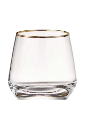 Ob zum Kaffee oder zum Wein: Ein Glas frisches Wasser in einem Touch of Gold Glas im 6er-Set mit goldenem Rand ist immer ein gern gesehener Begleiter. Es löscht den ersten Durst und neutralisiert den Geschmackssinn, so dass man sich besser auf die feinen Aromen eines guten Espressos oder edlen Tropfen konzentrieren kann.