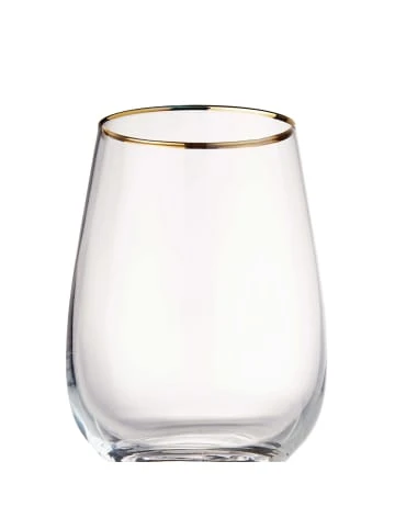 Ob zum Kaffee oder zum Wein: Ein Glas frisches Wasser in einem Touch of Gold Glas mit goldenem Rand im 6er-Set ist immer ein gern gesehener Begleiter. Es löscht den ersten Durst und neutralisiert den Geschmackssinn, so dass man sich besser auf die feinen Aromen eines guten Espressos oder edlen Tropfen konzentrieren kann.