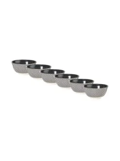 Schale mit Stil: Das bunte Ornaments-Geschirr passt in jede moderne Küche und ist ein stylischer Blickfang auf Ihrem Esstisch. In dieser schwarz-weiß gemusterten Porzellanschale im 6er-Set können Sie Ihren Gästen leckere Kleinigkeiten servieren. Vielseitig einsetzbar: Als Müslischale, als Suppenschale, für Süßigkeiten, Chips und andere Snacks. In verschiedenen Varianten und Größen erhältlich. – Gemustert – Klassisch – Nicht f?r Mikrowelle geeignet! – Nicht f?r Sp?lmaschine geeignet!
