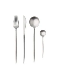 Für einen Wow-Effekt auf dem gedeckten Tisch sorgt das Stiletto Besteck aus Edelstahl. Sein puristisches Design mit spitz zulaufenden Griffen passt in seiner Klarheit perfekt zum nordischen Stil. Doch das edle Besteck sieht nicht nur gut aus: Beim Essen liegen Messer, Gabel und Löffel dank leicht runder Form gut und sicher in der Hand. 4-teiliges Set, weitere Varianten erhältlich. – Hochwertiges Besteck aus rostfreiem Edelstahl – Leicht runde Griffe für sicheren Halt – Im Trend: nordischer Stil – Sehr stilvoll und elegant – Ideal für besondere Anlässe oder den täglichen Gebrauch – Matter Effekt