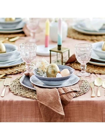 Mit unserer Geschirrserie Atlantis im angesagten Boho-Stil und organischen Formen kommt Extravaganz auf den gedeckten Tisch! Der Frühstücksteller aus Steinzeug ist handgefertigt in Portugal. Durch die reaktive Glasur entstehen unregelmäßige Farbverläufe, die jedes Teil der Serie zu einem echten Unikat werden lassen. Atlantis ist in verschiedenen Farben erhältlich, die Sie miteinander kombinieren können und so für Abwechslung auf Ihrem Tisch sorgen. Durch eine Iris-ähnliche Farbzentrierung passen alle Teile perfekt zusammen. Jedes Teil der Serie ist spülmaschinen- und mikrowellengeeignet. – Reaktive Glasur: Jedes Teil ein Unikat, durch Unterschiede bei der Farbgebung – Für den täglichen Gebrauch – Geschirrspülmaschinen- und mikrowellengeeignet