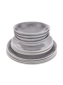 Mit unserer Geschirrserie Atlantis im angesagten Boho-Stil und organischen Formen kommt Extravaganz auf den gedeckten Tisch! Das 12-teilige Geschirr-Set aus Steinzeug ist handgefertigt in Portugal. Durch die reaktive Glasur entstehen unregelmäßige Farbverläufe, die jedes Teil der Serie zu einem echten Unikat werden lassen. Atlantis ist in verschiedenen Farben erhältlich, die Sie miteinander kombinieren können und so für Abwechslung auf Ihrem Tisch sorgen. Durch eine Iris-ähnliche Farbzentrierung passen alle Teile perfekt zusammen. Jedes Teil der Serie ist spülmaschinen- und mikrowellengeeignet. – Reaktive Glasur: Jedes Teil ein Unikat, durch Unterschiede bei der Farbgebung – Für den täglichen Gebrauch – Geschirrspülmaschinen- und mikrowellengeeignet
