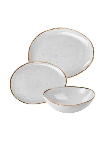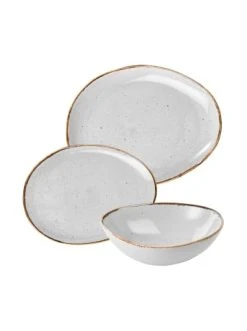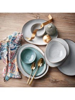 ¡que bonito! Der hochwertige Handmade Look des 12-teiligen Finca Geschirrsets aus Porzellan fällt sofort ins Auge. Kein Wunder: Die reaktive Glasur mit natürlichen Sprenkeln, die authentische Form und die Vintage Optik erinnern an echtes Handwerk, wie man es nur noch in alten Manufakturen findet. Damit ist Finca kein Geschirr „von der Stange“, sondern deckt Ihren Tisch mit individuellen Schmuck- und Sammlerstücken. – Reaktive Glasur: Jedes Teil ein Unikat, durch Unterschiede bei der Farbgebung