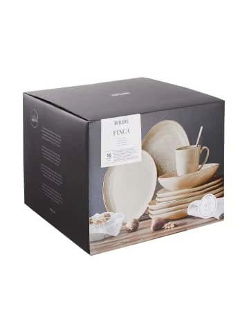 ¡que bonito! Der hochwertige Handmade Look des 16-teiligen Finca Geschirrsets aus Porzellan fällt sofort ins Auge. Kein Wunder: Die reaktive Glasur mit natürlichen Sprenkeln, die authentische Form und die Vintage Optik erinnern an echtes Handwerk, wie man es nur noch in alten Manufakturen findet. Damit ist Finca kein Geschirr „von der Stange“, sondern deckt Ihren Tisch mit individuellen Schmuck- und Sammlerstücken. – Reaktive Glasur: Jedes Teil ein Unikat, durch Unterschiede bei der Farbgebung