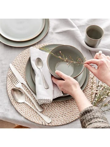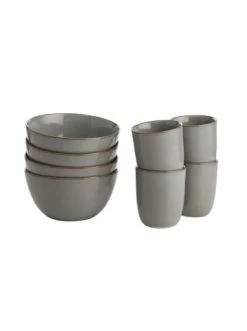 Mit unserer Geschirrserie Native im angesagten minimalistischen Stil kommt der neue Trend auf den gedeckten Tisch! Das 8-tlg. Geschirr-Set aus Steinzeug in der Farbe Grau ist handgefertigt in Portugal. Durch die reaktive Glasur wird jedes Teil der Serie zu einem echten Unikat. Das Set hat eine dünne und hochwertige Scherbe mit einer klaren Formgebung. Durch den unglasierten Boden, wodurch das Rohmaterial zum Vorschein kommt, bringt er einen Manufaktur-Look auf Ihren gedeckten Tisch. Die zusätzlichen Kristalle in der Glasur machen die stilvolle Geschirrkollektion zu etwas ganz Besonderem. Jedes Teil der Serie ist spülmaschinen- und mikrowellengeeignet. – Jedes Teil ein Unikat: Natürliche Unterschiede bei der Farbgebung – Für den täglichen Gebrauch – Geschirrspülmaschinen- und mikrowellengeeignet