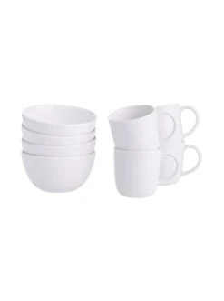 Mit unserer Geschirrserie Native im angesagten minimalistischen Design kommt der neue Trend auf den gedeckten Tisch! Das 8-tlg. Geschirr-Set aus Steinzeug in der Farbe Weiß ist handgefertigt in Portugal und hat eine dünne und hochwertige Scherbe mit einer klaren Formgebung. Durch die reaktive Glasur mit kleinen Kristalleinschlüssen wird jedes Teil der Serie zu einem echten Unikat. Der unglasierte Boden, der das Rohmaterial zum Vorschein bringt, sorgt für einen formvollendeten Manufaktur-Look. Jedes Teil der Serie ist spülmaschinen- und mikrowellengeeignet. – Jedes Teil ein Unikat: Natürliche Unterschiede bei der Farbgebung – Für den täglichen Gebrauch – Geschirrspülmaschinen- und mikrowellengeeignet