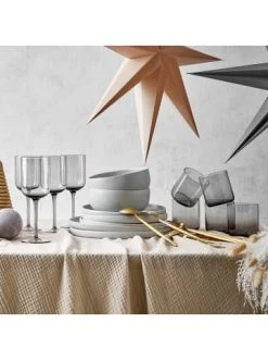 Ihre Teller, Bestecke und Tischaccessoires müssen jetzt ganz stark sein. Denn wenn Sie das mundgeblasene Venice Trinkglas 325 ml auf dem gedeckten Tisch platzieren, stiehlt es allem und jedem die Show. Das moderne, farbige Glas und die klare Form machen dieses Glas zu einem echten Designer-Piece und absoluten Hingucker. Die Venice Serie umfasst Trinkgläser, Weingläser und Sektgläser in den Farben Mauve und Grau, ideal zum Kombinieren.