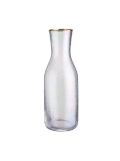 Wie die Perle einer Auster schillert auch die Smeralda Karaffe mit Goldrand im zarten Perlmutt und weckt so echtes Fernweh nach Meer und Strand. Aber auch für den Urlaub zuhause ist die transparente Karaffe mit ihrer leichten Oberflächenstruktur ein echter Hingucker. Kombiniert mit typischen maritimen Accessoires, wie Muscheln oder Deko-Fische und phantasievollem Geschirr holen Sie sich das Mittelmeer ganz einfach nach Hause. Zusammen mit den passenden Wassergläsern, Champagnerflöten und Champagnerschalen ist der Strand-Look komplett.