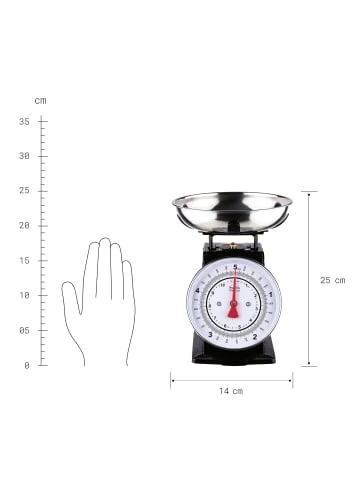 Ob Zucker, Mehl oder Reis: Beim Kochen und Backen ist eine Küchenwaage oft unerlässlich. Diese kommt – formschön und klassisch – ohne Batterien aus. Die Waagschale lässt sich praktischerweise abnehmen und dadurch leicht reinigen. Ein weiterer Pluspunkt: Mit Hilfe einer Stellschraube kann die Anzeige zurückgestellt werden, so dass das Zuwiegen weiterer Zutaten leicht und unkompliziert funktioniert. Für den Hausgebrauch bestimmt. Die maximale Tragkraft beträgt 5 kg – bei einer Messabweichung von bis zu +/- 12 g.