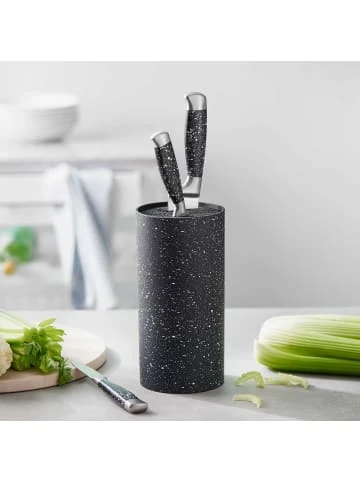 Mit dem Bolero Messerblock sind Ihre Messer stilvoll aufbewahrt und werden gleichzeitig zum einem modernen Teil Ihrer Küchendeko. Der mattschwarze Messerblock aus robustem Kunststoff bietet reichlich Platz für gleich mehrere Messer in verschieden Größen. So sind Ihre Küchenmesser stets sicher verräumt und in greifbarer Nähe für jegliche Schnippelarbeiten. Und damit Ihr Messerblock sich richtig gebraucht fühlt, gibt es auch das passende Messerset aus der Bolero-Reihe.