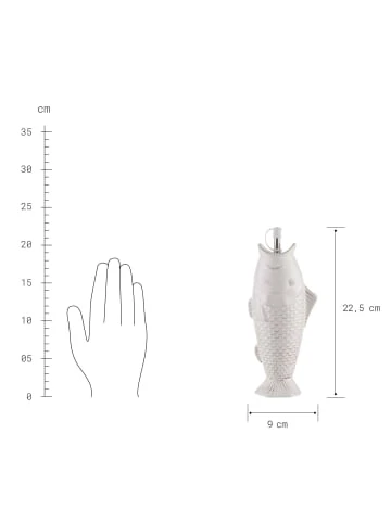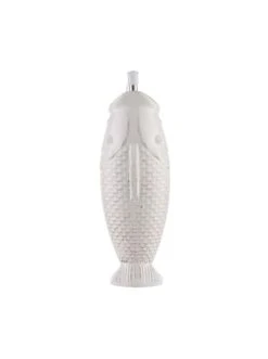 Für Ihren kreativ gedeckten Tisch angeln Sie sich die weiße Pescara Ölflasche 370 ml in Fischform aus Keramik mit Edelstahl-Ausgießer. So können Sie und Ihre Gäste beim Essen nach Belieben ein hochwertiges Pflanzenöl (z.B. kalt gepresstes Ölivenöl) nach Belieben über den Salat träufeln, gebratenes Gemüse oder leckeren Fisch damit verfeinern. Mit Vintage-Effekt. Weiteres Geschirr aus der Pescara Serie erhältlich, ideal auch zum Kombinieren.