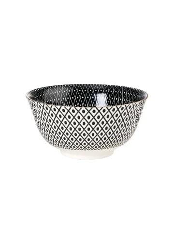 Schale mit Stil: Das bunte Ornaments-Geschirr passt in jede moderne Küche und ist ein stylischer Blickfang auf Ihrem Esstisch. In dieser schwarz gemusterten Porzellanschale können Sie Ihren Gästen leckere Kleinigkeiten servieren. Vielseitig einsetzbar: Als Müslischale, als Suppenschale, für Süßigkeiten, Chips und andere Snacks. In verschiedenen Varianten und Größen erhältlich. – Gemustert – Klassisch – Nicht f?r Mikrowelle geeignet! – Nicht f?r Sp?lmaschine geeignet!