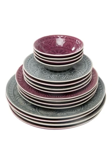 Scharfe Gewürze und kräftige Aromen passen besonders gut zu dieser exotischen Serie aus eleganten, kleinen Schalen, Speise- und Desserttellern aus Steinzeug. Jedes Stück erzählt seine eigene Geschichte und das traditionelle Reliefdekor hebt sich optisch sanft unter der glatten Glasur der bunten Schale ab. Die Speiseschale bietet einen sanften und doch intensiven Blickfang auf Ihrem gedeckten Tisch und lässt südostasiatischen Flair aufkommen. – Handbemalte und robuste Keramik in zarter Optik – Kontrast: Glänzende Innenglasur und matte Außenglasur – Fühlbare Reliefstruktur in leuchtenden, harmonischen Farben – Krakelee-Effekt: gesprungene Glasur nach asiatischem Vorbild – Hervorragend kombinierbar für Hochzeit, Festessen, Sommerparty