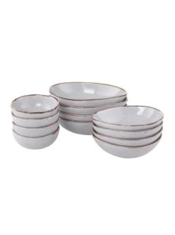 ¡que bonito! Der hochwertige Handmade Look des 12-teiligen Finca Schalen-Sets aus Porzellan fällt sofort ins Auge. Kein Wunder: Die reaktive Glasur mit natürlichen Sprenkeln, die authentische Form und die Vintage Optik erinnern an echtes Handwerk, wie man es nur noch in alten Manufakturen findet. Damit ist Finca kein Geschirr „von der Stange“, sondern deckt Ihren Tisch mit individuellen Schmuck- und Sammlerstücken. – Reaktive Glasur: Jedes Teil ein Unikat, durch Unterschiede bei der Farbgebung