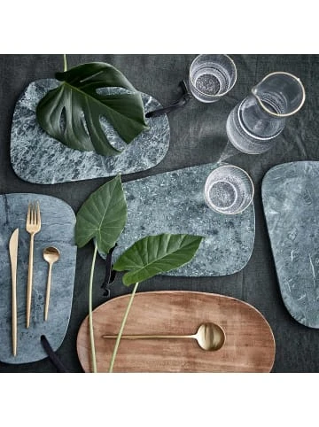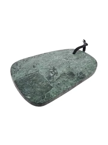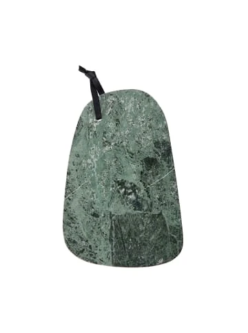 Nach dem Vorbild der Natur: Das Marble Schneidebrett aus echtem Marmor in Grün kommt ohne Ecken und Kanten in organischer Form daher. Der edel gemaserte Stein und die hochwertige Optik werden durch das Lederband noch unterstrichen. Deshalb darf das Schneidebrett auch nach dem Kochen oder Essen gerne noch dekorativ auf dem Tisch oder auf der Arbeitsfläche liegen bleiben.