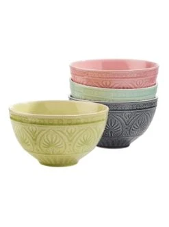 Scharfe Gewürze und kräftige Aromen passen besonders gut zu dieser exotischen Sumatra Schalen aus Steinzeug. Das traditionelle Reliefdekor hebt sich optisch sanft unter der glatten Glasur der großen, bunten Schale ab. Die Suppenschale bietet einen echten Blickfang auf Ihrem gedeckten Tisch und lässt südostasiatischen Flair aufkommen. – Handbemalte und robuste Keramik in zarter Optik – Kontrast: Glänzende Innenglasur und matte Außenglasur – Fühlbare Reliefstruktur in leuchtenden, harmonischen Farben – Krakelee-Effekt: gesprungene Glasur nach asiatischem Vorbild – Hervorragend kombinierbar für Hochzeit, Festessen, Sommerparty