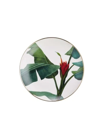 Mit Ihrem Fernweh bekommen Sie Appetit auf alles, was nach Sonne, Süden und „ganz weit weg“ schmeckt. Da dürften auch die Tropical Teller mit edlem Goldrand ganz nach Ihrem Geschmack sein. Die dekorativen Teller aus New Bone bringen einen Hauch Exotik und ein bisschen Urlaubsstimmung auf den gedeckten Tisch. Und das harmoniert hervorragend mit frischen Südfrüchten und der Küche ferner Länder. Mit Ananas- und Bananenblatt-Motiv (Druck) erhältlich, ideal auch zum Kombinieren.
