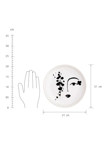 Jetzt bringen Sie den angesagten Lineart Stil auch auf den gedeckten Tisch – mit dem hübschen Line Art Teller Gesicht aus Steinzeug in Schwarz-Weiß. Ob als Frühstücksteller, als Kuchenteller oder zum Servieren von leckeren Kleinigkeiten – das moderne Design macht Appetit auf mehr. Und genau deshalb gibt es den Line Art Teller noch in einer weiteren Variante, ideal auch zum Kombinieren.
